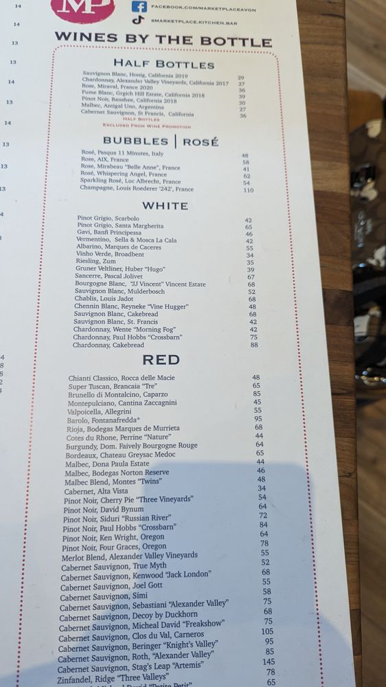Market Place Kitchen & Bar - Avon Menu